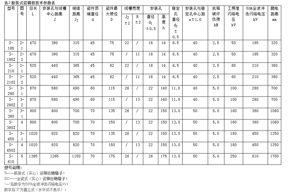 S——瓷横担绝缘子;