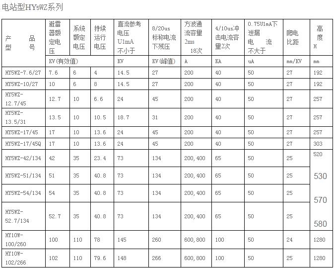 HY5WZ-7.6/27电站型避雷器