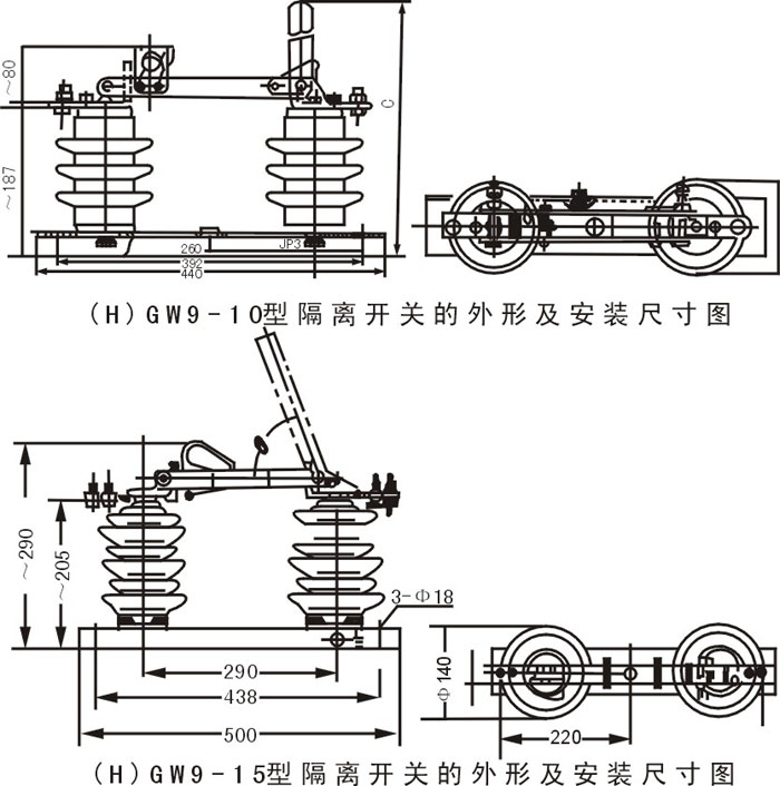 (H)GW9系列户外高压隔离开关按外绝缘能力分为普通型和耐污型两种,均可附装接地开关,接地开关分单接地、双接地两种,接地开关按承受短路电流的电动力作用的热效应能力又分为Ⅰ型和Ⅱ型。
