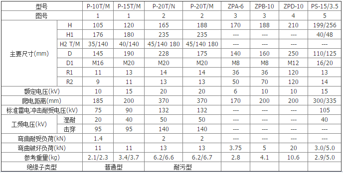 GB/T1000.2-1988标准中规定的新型号针式瓷绝缘子额定电压均为10kV,按适用的环境条件分为:普通型、加强绝缘1型(中污型)、加强绝缘2型(特重污型)三种。