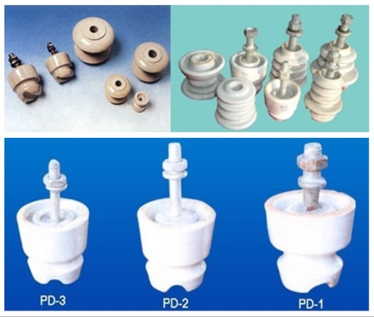 绝缘子俗称瓷瓶,常用的有针式户外绝缘子、鼓形户内绝缘子等,它们都用于交流或直流电压在500 V以下的架空线路上作固 定导线用。瓷瓶的梢内可固定电线,而瓷瓶自身中间又用螺丝固定在线杆或角铁的支架上。瓷瓶的作用一 方面可在架空线路上拉紧固定电线,另一方面可与别的金属导体 起隔离绝缘作用。