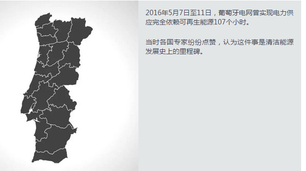 2016年5月7日至11日,葡萄牙电网曾实现电力供应完全依赖可再生能源107个小时。